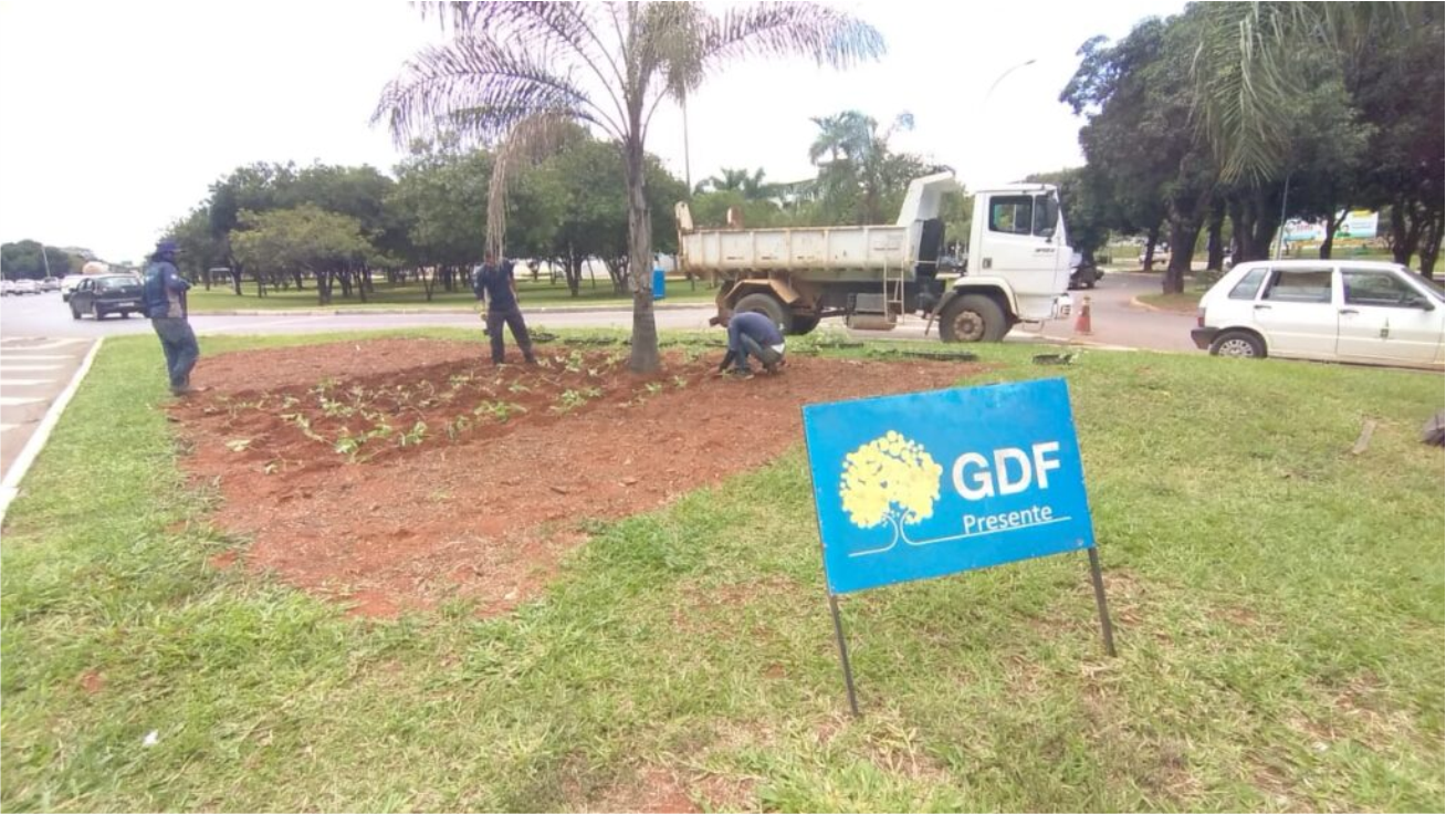 Exemplares de camomila e zínia de várias cores começaram a ser plantados antes do Carnaval. Dois caminhões do Polo Central do programa retiraram as mudas e o adubo necessário do Viveiro 1 da Novacap, localizado no Park Way. Coube a uma equipe de dez operários da administração local e reeducandos da Funap, órgão ligado à Secretaria de Justiça e Cidadania (Sejus), preparar o terreno.